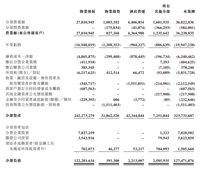 除了物业发展业务,富力地产的物业投资业务收入也出现下降。