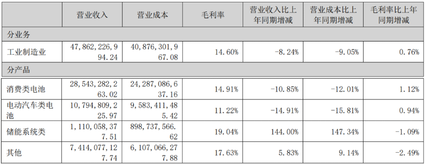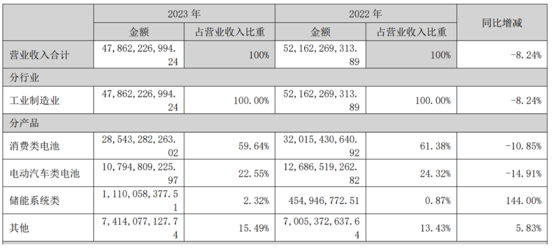 在严峻的市场形势与背景下,欣旺达2023年消费类电池营业收入较上年下降了10个百分点,至285.43亿元,收入增长承压。