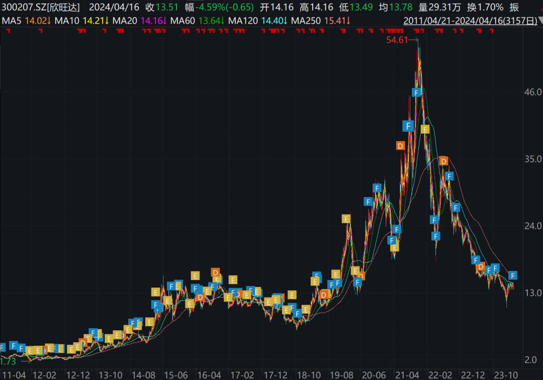 欣旺达2023年营业收入同比下降8.42%,为上市以来营收首次下滑。近期,公司股价走势也呈疲软态势