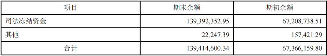 涉仲裁案件冻结资金1.39亿