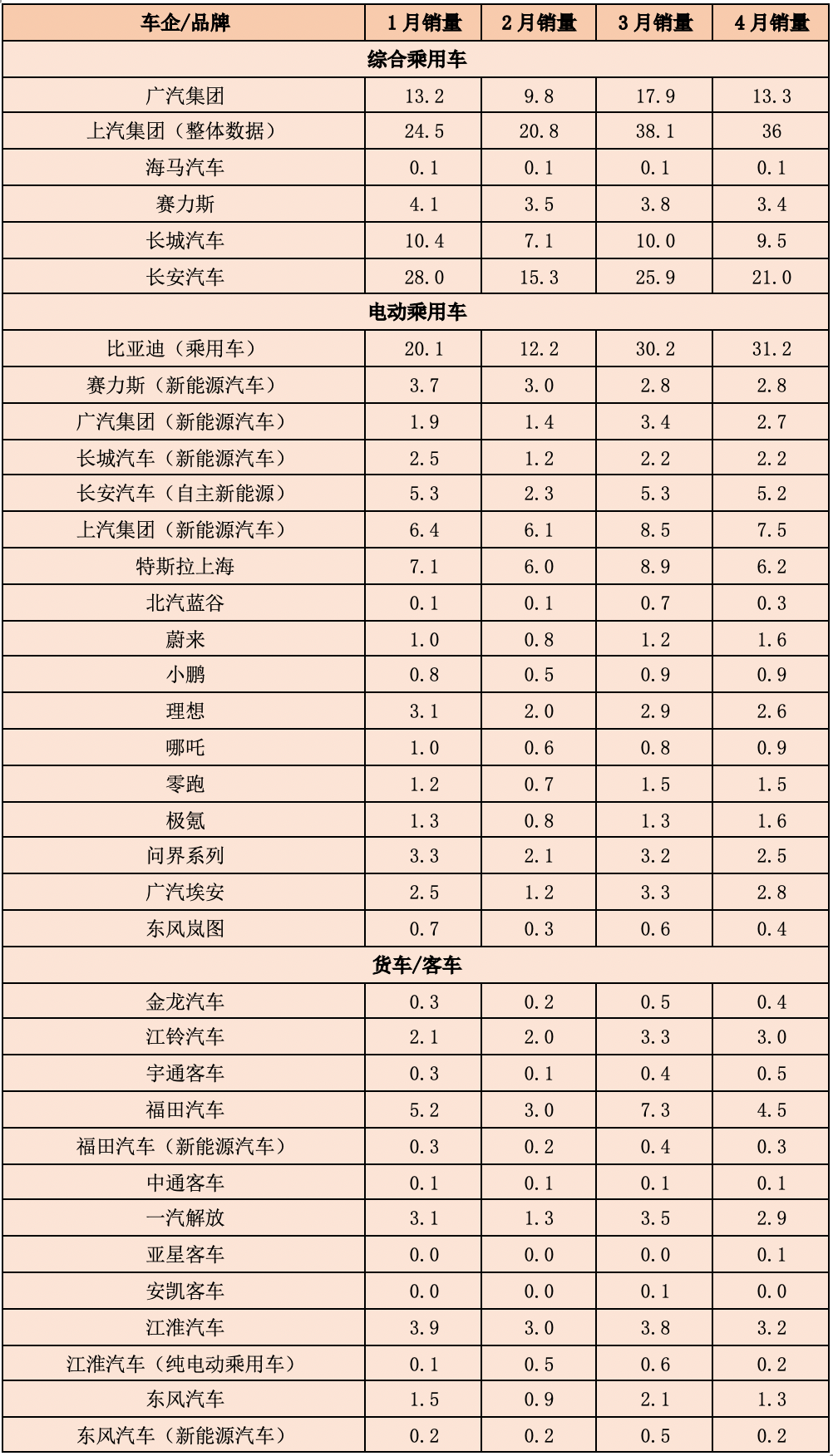数据来源:公司公告,公开资料(注:亚星客车、安凯客车销量为0系小数保留所致)