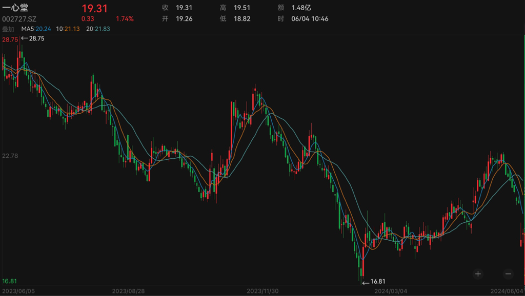 或受上述事件影响,6月3日,一心堂股价开盘一度跌停,最终收于18.98元/股(不复权),单日下跌8.53%。为安抚市场情绪,一心堂实际控制人、董事长阮鸿献于当晚提议,公司拟使用自有资金以集中竞价方式回购公司股份,用于股份注销或在未来适宜时机将回购股份用于员工持股计划或股权激励,回购资金总额不低于0.8亿元且不超过1.5亿元(均含本数)。