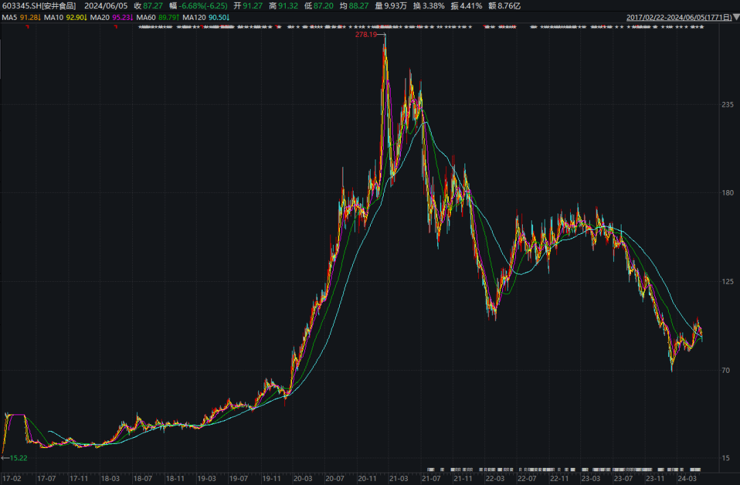 或受上述减持消息影响,安井食品6月5日股价下跌6.68%,报收于87.27元/股,今年以来该公司股价已累计下跌16.58%,当前总市值为255.96亿元。