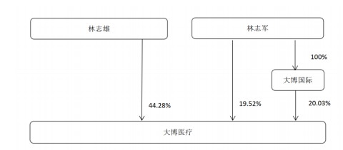 若本次转让完成,大博商通持股为零,林志雄直接持有大博医疗的股份比例达至44.28%,持股比例最高;其弟林志军则仍直接持股19.52%,且通过大博医疗国际投资有限公司间接持股20.03%。公司实控人仍为林志雄、林志军。