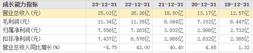 2023年,新诺威营收实现25.02亿元,同比下滑4.75%,这是其上市以来年度营收首次出现下滑。标点财经、投资时间网研究员注意到,公司2023年境外出口占比约为49%,同比2022年减少17.63%。功能性原料、保健食品、其他收入占比分别为85.15%、12.80%、2.05%,从销售数据来看,各个主要产品销量均有不同程度的增加,因此2023年功能性原料收入降低主要系价格有所下降。