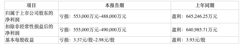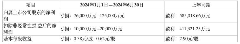 据赣锋锂业半年度业绩预告披露,预计今年上半年公司净利亏损7.6亿元—12.5亿元,上年同期盈利58.5亿元;扣非净利润亏损1亿元—2亿元,上年同期盈利41.1亿元。