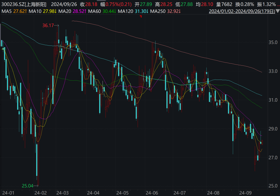 标点财经、投资时间网研究员注意到,上述违规公告未发布前一个交易日,上海新阳收涨0.71%报28.5元/股,总市值为89.31亿元。但该消息发布次日,上海新阳早盘一度跌逾8%,盘中触及26.06元/股,为近7个月新低。此后,公司股价回涨,截至9月25日收报27.97元/股,总市值约为88亿元。