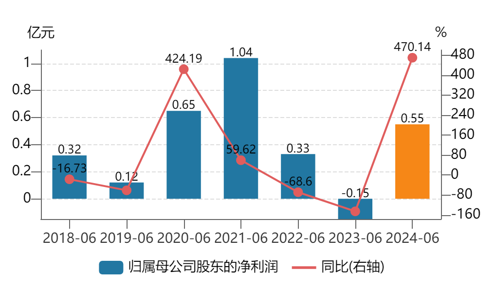 在利润端,Wind数据显示,昊志机电的归母净利润从2021年上半年到2023年上半年呈现下降趋势,从1.04亿元盈利下降到亏损1483.69万元,而2023年上半年到2024年上半年则呈现上升状态,归母净利润大幅增长470.14%至5491.79万元。