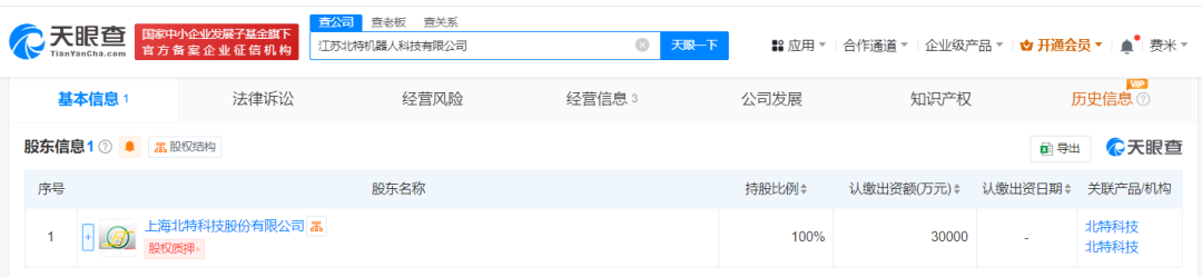 天眼查App显示,近日,江苏北特机器人科技有限公司成立,法定代表人为潘磊,注册资本3亿人民币,经营范围含智能机器人的研发、工业机器人制造、智能机器人销售、工业机器人销售、技术进出口、货物进出口等。股东信息显示,该公司由北特科技(603009)全资持股。