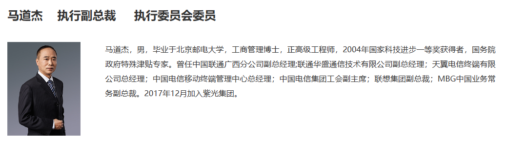 值得注意的是,马道杰于2017年12月加入紫光集团(新紫光集团原名),历任紫光国微常务副总裁、总裁、副董事长兼总裁、董事长兼总裁等关键职位。2023年5月,他卸任紫光国微总裁职务,保留董事长职位;两月后兼任紫光展锐(上海)科技有限公司(下称紫光展锐)董事长。今年9月,紫光展锐40亿元股权融资到账。