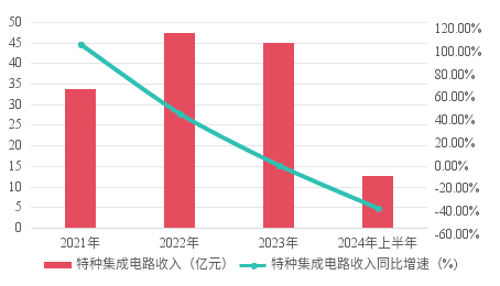目前,公司两大主业发展均遇挑战。上半年,特种集成电路收入增速约为-43%,2023年同期为10.79%;智能安全芯片的收入增速虽仍为正值,但增长不到1%,2023年同期则暴增近82%。且两主业的毛利率均较上年同期有所下降,其中特种集成电路的毛利率走低近3个百分点。