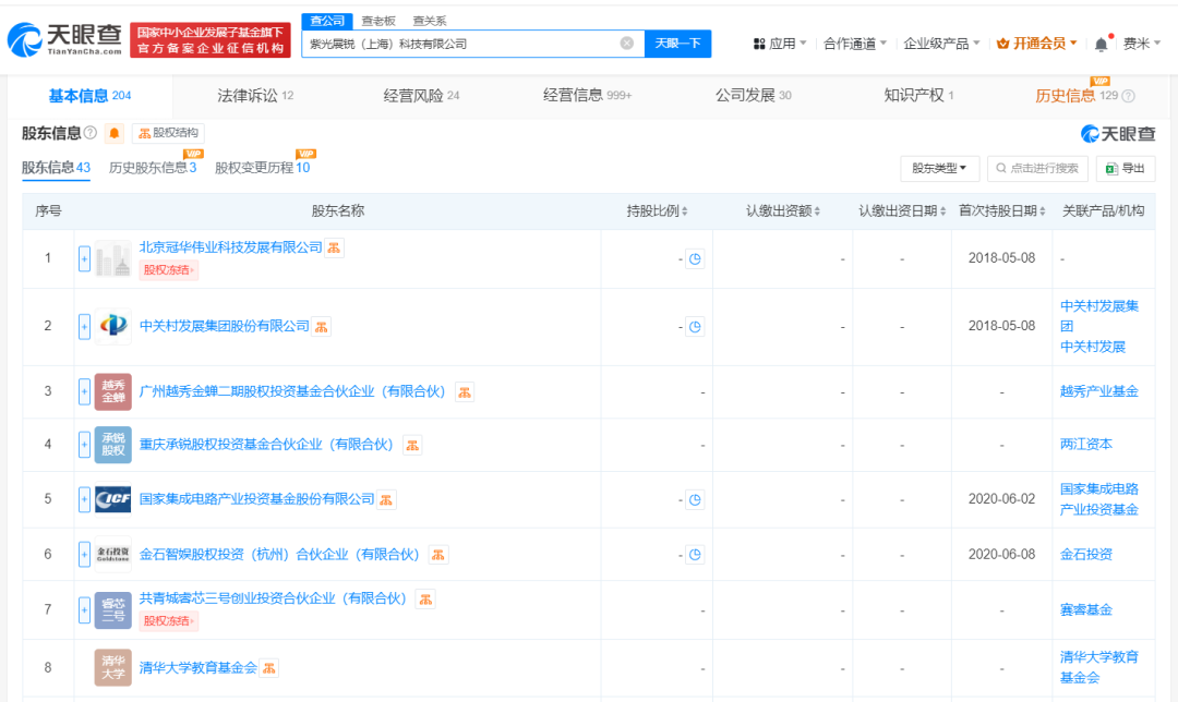 天眼查App显示,近日,紫光展锐(上海)科技有限公司发生工商变更,新增工银资本旗下工融金投四号(天津)股权投资合伙企业(有限合伙)、交银金融资产投资有限公司、人保资本旗下人保科创私募股权投资基金(武汉)中心(有限合伙)等为股东,同时注册资本由约50.6亿人民币增至约53.8亿人民币。