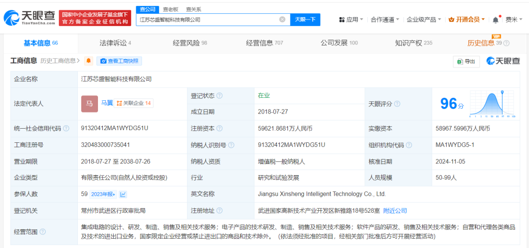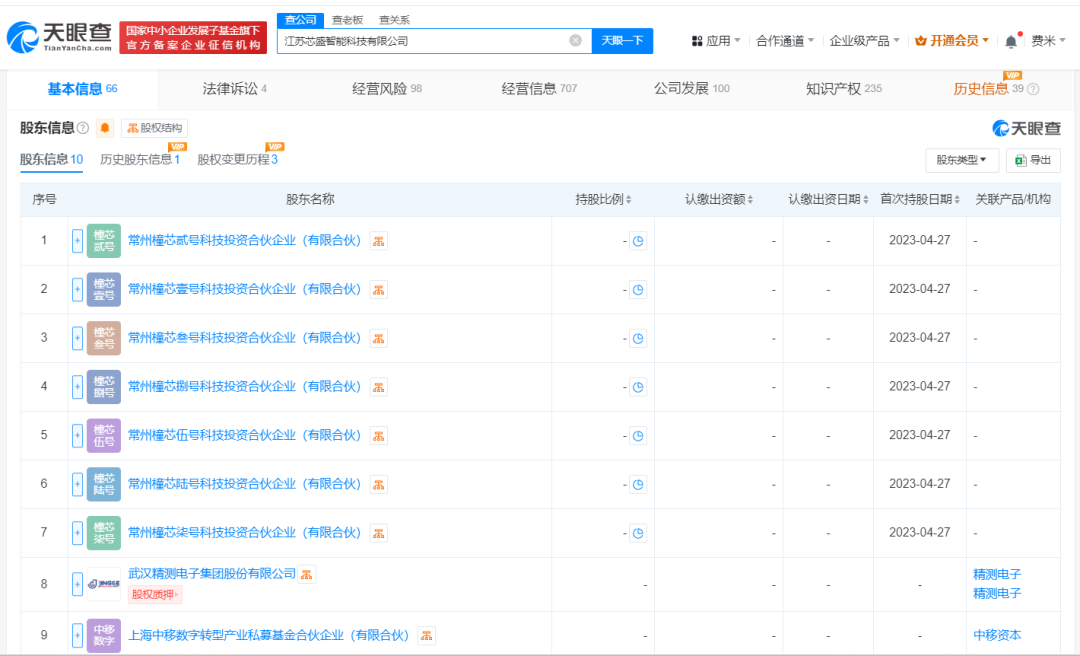 江苏芯盛智能科技有限公司成立于2018年7月,法定代表人为马翼,注册资本约5.96亿人民币,经营范围含集成电路的设计、研发、制造、销售及相关技术服务;电子产品的技术研发、制造、销售及相关技术服务;软件产品的研发、销售及相关技术服务等,现由湖南芯盛股权投资合伙企业(有限合伙)、常州橦芯贰号科技投资合伙企业(有限合伙)、常州橦芯壹号科技投资合伙企业(有限合伙)及上述新增股东等共同持股。官网显示,该公司是一家固态存储控制器芯片及解决方案提供商。