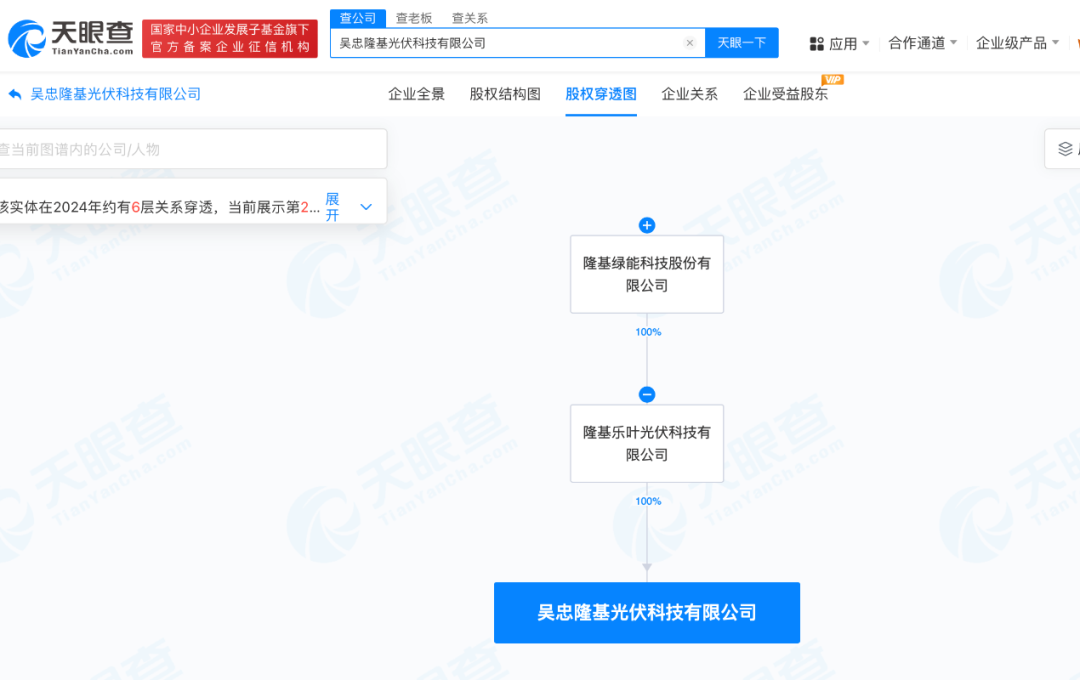 近日,吴忠隆基光伏科技有限公司成立,法定代表人为任乃俊,注册资本1000万人民币,经营范围含光伏设备及元器件制造、电子元器件与机电组件设备销售、太阳能发电技术服务等。天眼查App信息显示,从股权全景穿透图看,该公司由隆基乐叶光伏科技有限公司全资持股,后者为隆基绿能(601012)全资子公司。