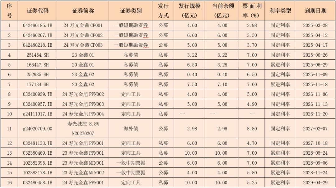 标点财经、投资时间网研究员查阅Wind数据注意到,虽然晨鸣纸业上市主体没有存量债券,但晨鸣集团系成员目前有存量债券16只,当前总余额76.98亿元,其中4只由寿光市金旭产业发展集团有限公司发行,12只由山东寿光金鑫投资发展控股集团有限公司发行,剩余期限最短的还有0.35年,最长的还有4.01年,有7只将在1年内到期,1年内到期总余额为29亿元,整个晨鸣系也将在短期内面临较大的偿债压力。