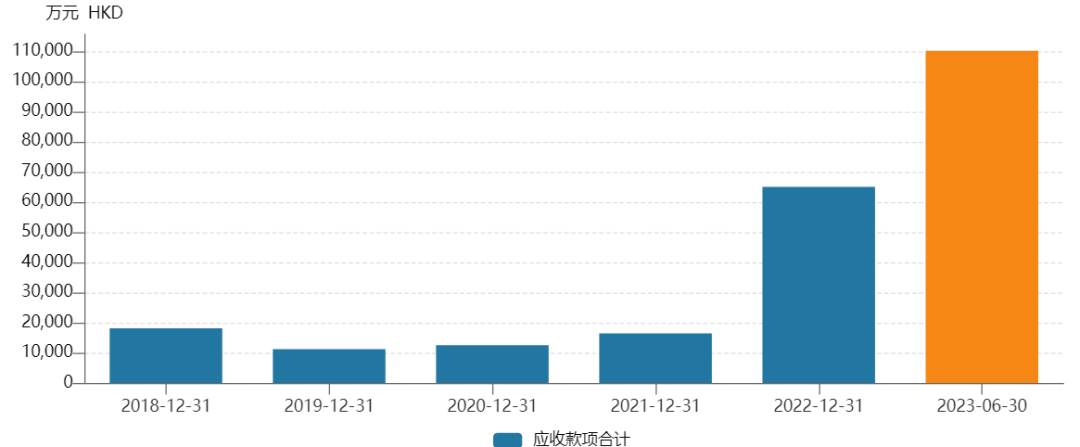 此外,该公司应收账款规模也是一个值得关注的指标。2020年至2022年,公司应收账款连年攀升,期末余额分别为0.57亿元、1.34亿元和5.85亿元。截至2023年6月末,公司的贸易应收款项已高达9.67亿元,贸易及其他应收款项减值亏损为2180万元,较上年同期增加186.8%。