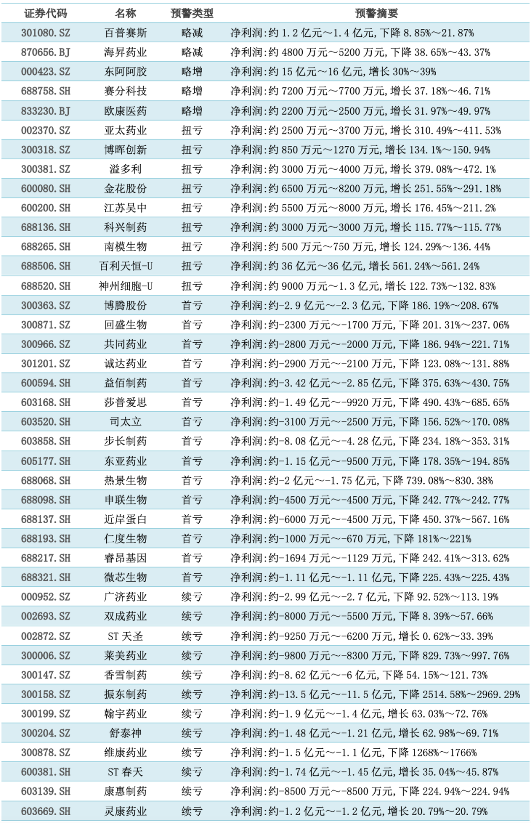 Wind数据显示,截至2025年1月21日,A股医药生物板块中,已有99家企业披露了2024年业绩预告,其中预计净利润出现亏损的企业数量有51家,占比已过半数。