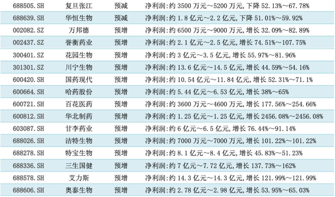 此外,去年全年有22家盈利预减企业,9家扭亏企业及17家盈利预增企业。其中川宁生物(301301.SZ)是预计全年盈利最高的,该公司预计2024年全年实现归属于上市公司股东的净利润为13.6亿元—14.5亿元,与上年同期相比,预计同比增长44.59%—54.16%。