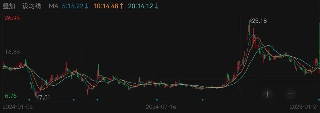 在持续亏损的几年里,川大智胜的股价表现呈现出震荡态势。2022年至2023年间,该公司股价在10元/股以下至20元/股以上的区间内大幅度波动,低点一度触及9.33元/股,而高点则攀升至21.05元/股。