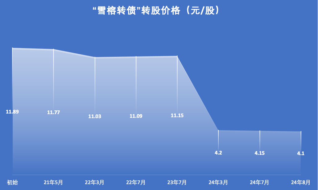 2021年5月以来,“雪榕转债”的转股价格从初始的11.89元/股一路修正至4.10元/股。2025年1月,雪榕生物再发公告称,自2024年12月31日至2025年1月14日,公司股票已有十个交易日的收盘价低于当期转股价格的85%(即3.48元/股),预计后续将可能触发转股价格向下的修正条件。