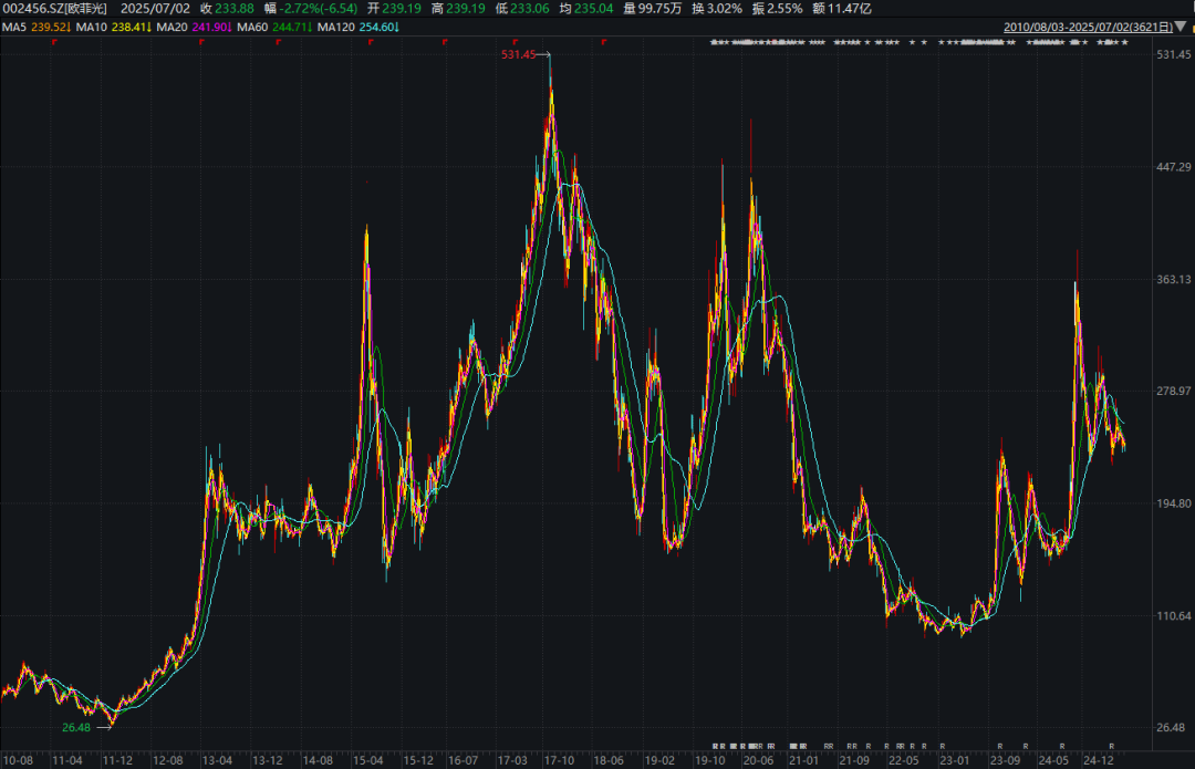 不过,独供消息发布次日,欧菲光股价涨幅仅为1.11%,与2023年9月底市场爆出欧菲光摄像头模组进入华为Mate60系列供应链时的“6连板”形成鲜明对比,也与此前的备受追捧的果链概念相去甚远。