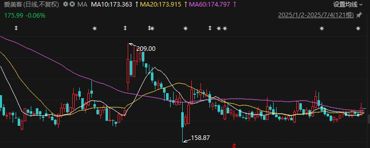 截至7月3日,爱美客股价收盘于176.09元/股(不复权),较年内高点降约17%,总市值约为534亿元。