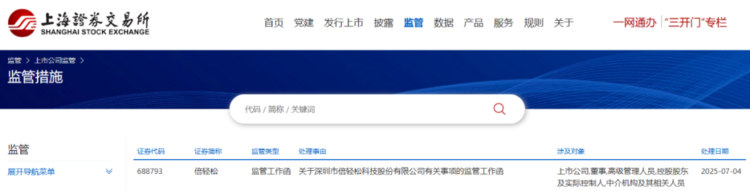 上交所发布对倍轻松的监管工作函