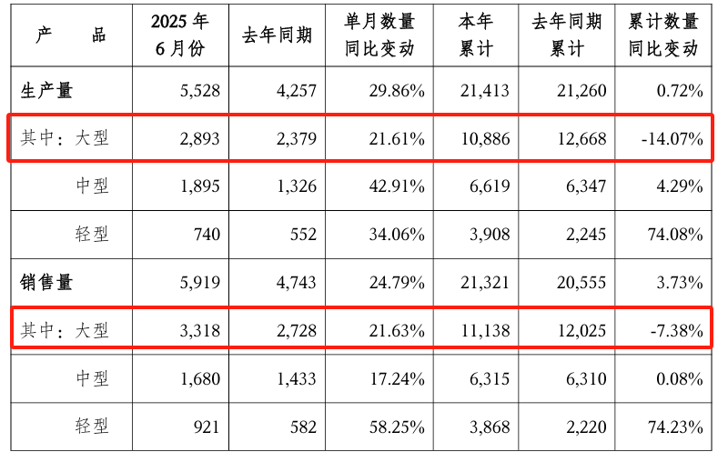 在此过程中,宇通客车的产品结构变化尤为明显。产销数据显示,宇通客车2025年上半年大型客车累计销量同比下滑7.38%,与小型客车74.23%的同比增长形成鲜明对比,这种分化趋势或预示着市场需求的根本性转变。
