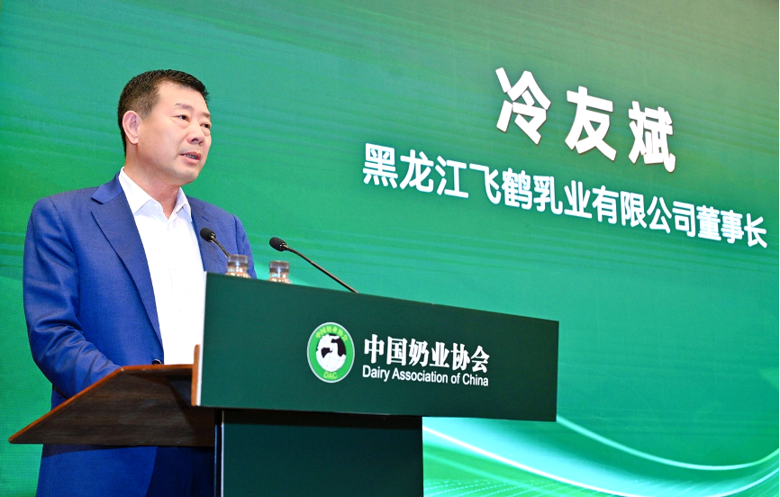 中国飞鹤董事长冷友斌在《2025中国奶业发展战略研讨会》进行经验分享
