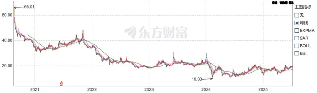 截至2025年7月14日收盘,时空科技股价报收于19.45元/股,与2020年8月21日上市当日曾达到的66.01元/股高位相比,跌幅达70.53%。