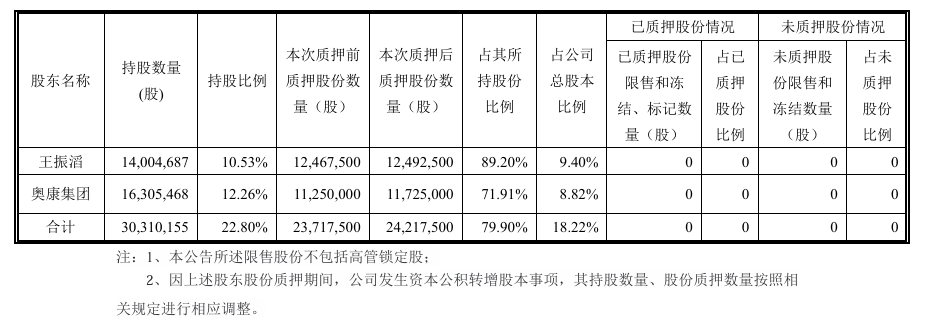 但也有行业人士指出,此举更深层次的原因或在于奥康集团日益凸显的资金压力。最新公告显示,王振涛所持有的康华生物股份中,已有89.20%被质押;与此同时,作为其一致行动人的奥康集团,持股质押比例也高达71.91%。此类操作通常表明,股东在融资方面可利用的其他资产或渠道较为有限,因而不得不依赖核心股权进行质押。