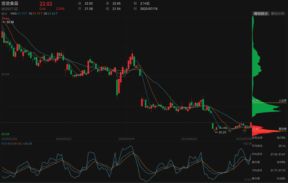 这或将影响二级市场投资者对“洽洽转债”的转股预期及公司股价表现。截至7月21日收盘,恰恰食品股价报22.36元/股(不复权),总市值为113亿元。今年以来,该公司股价累计下跌约三成。