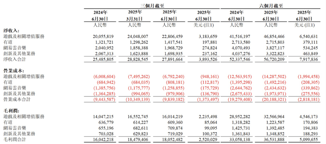 在第一季度大超预期后,市场对网易公司(下称网易,9999.HK、NTES.O)第二季度的业绩表现更加期待。近日,网易公布了截至2025年6月30日的第二季度未经审计财务报告。