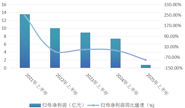 梳理过往财报可见,这是公司自2000年以来最低中报净利润表现。2001年中报、2002年中报、2003年中报,南玻A的归母净利润分别为7922万元、8213万元和9189.5万元。此后,该公司半年度净利润均在亿元级别,2021年上半年曾高达13.53亿元。时至2025年上半年,公司归母净利润仅为0.75亿元。