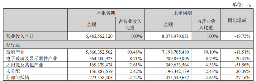 对于本期业绩变动,公司此前在业绩预告中称,受光伏玻璃和浮法玻璃价格下降影响,公司光伏玻璃和浮法玻璃业务毛利同比下滑;此外,因产品售价下跌,公司根据会计准则等规定,对可变现净值下降的部分存货计提了存货跌价准备。