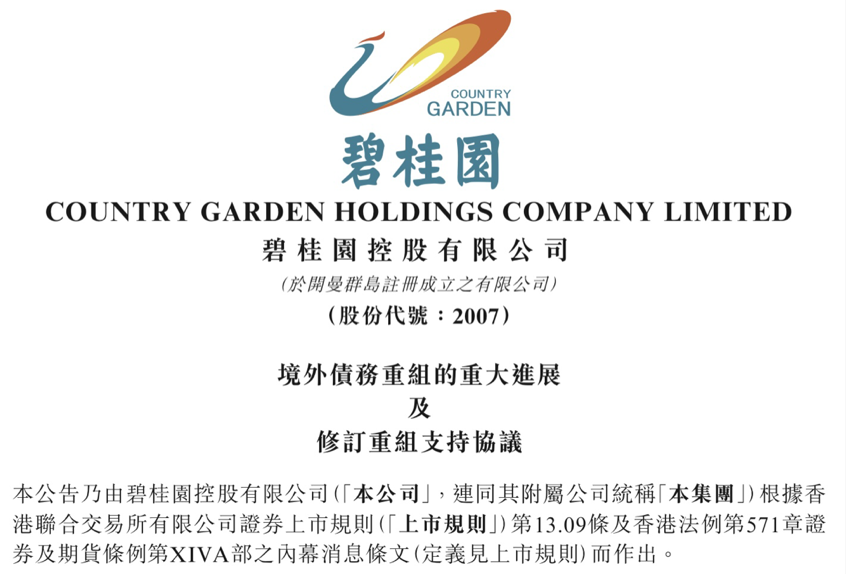 碧桂园发布境外债务重组重大进展相关公告