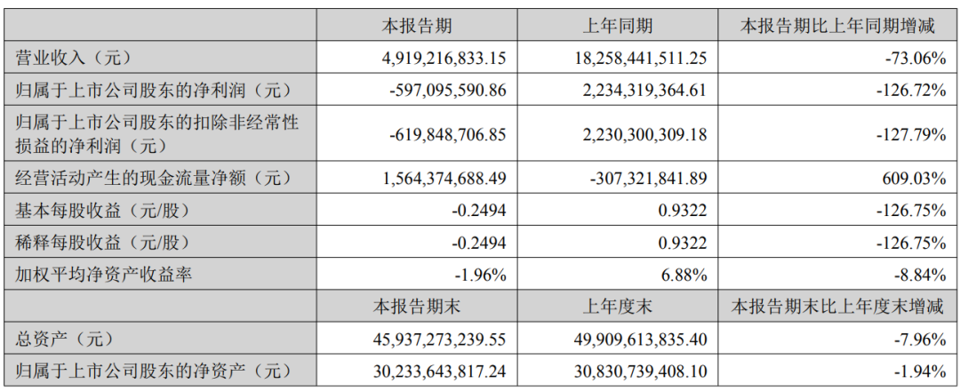 近日,智飞生物发布2025年半年报。财报数据显示,智飞生物今年上半年实现营业收入49.19亿元,同比减少73.06%;实现归母净利润为亏损5.97亿元,上年同期为盈利22.34亿元,同比减少126.72%,同比由盈转亏。