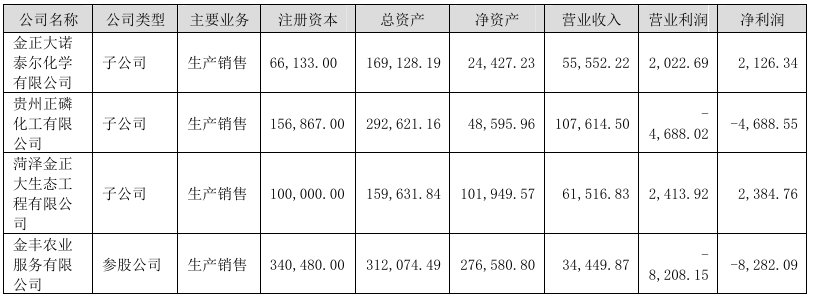 半年报数据显示,在金正大主要参、控股公司中,今年上半年有两家盈利、两家亏损。