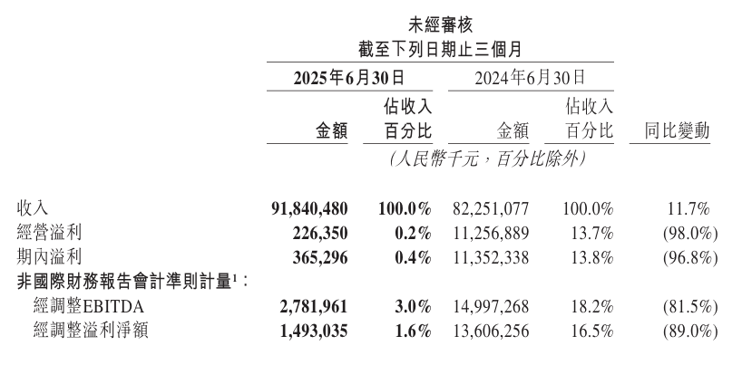 财报数据显示,今年第二季度,美团实现营收918.4亿元,同比增长11.7%;经营利润从去年同期的112.56亿元骤降至2.26亿元,跌幅高达98%;经调整净利润仅剩14.93亿元,较去年同期的136.06亿元同样大跌89%,严重不及预期。