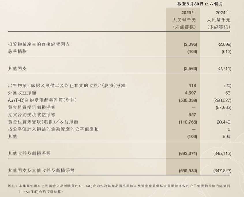 2025年上半年梦金园其他开支、其他收益及亏损净额(千元)