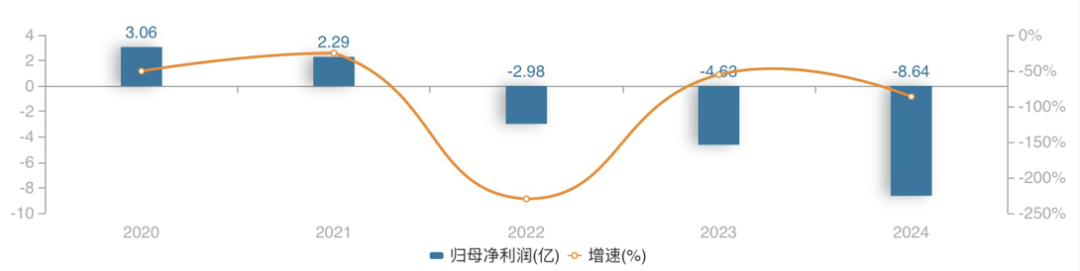 2020年至2024年美克家居归母净利润及同比增速情况(亿元、%)