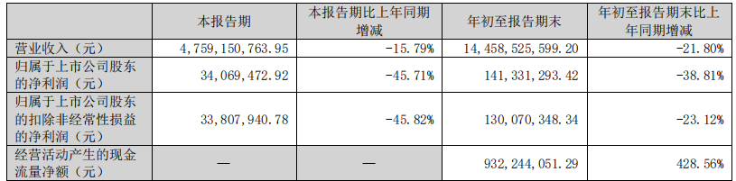 其中第三季度,公司营收、归母净利润分别为47.59亿元和0.34亿元,两业绩指标同比、环比均有所下滑,尤其是归母净利润同比、环比降幅均在四成以上。