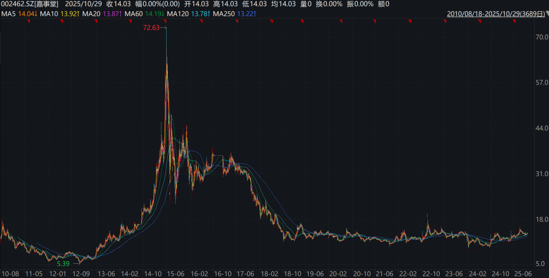 在二级市场,2014年至2015年上半年,嘉事堂曾上演一波亮眼行情,股价由十几元攀升至80多元,但此后震荡下行、近年来也一直在低位徘徊。截至今年10月28日,公司股价报收于14.03元/股(不复权),市值不到41亿元。曾经的A股“大牛股”,荣光不再。