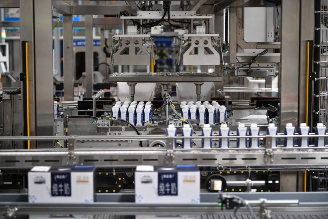 生产端,2023年,蒙牛在宁夏建成全球首座全数智化工厂,通过打造5G+立体化、效益化、高效化、智能化一体的“绿色智慧”工厂,实现了全系统、全链条、全流程、全自动的“全数智化”。2024年,该工厂凭借“100人、100万吨年产能、100亿元年产值”的全球最高人效比,成功认证为“灯塔工厂”,成为中国乳业首座、全球液态奶首家“灯塔工厂”。