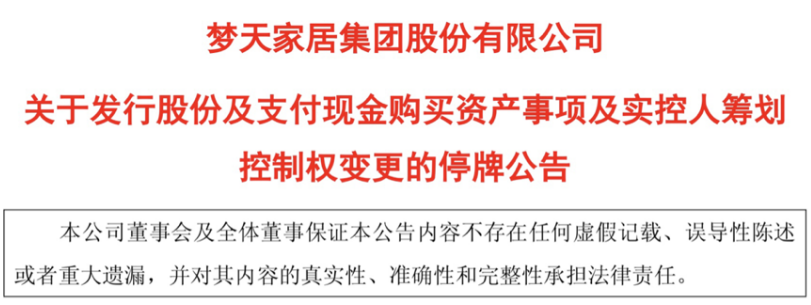 梦天家居发布实控人筹划控制权变更公告
