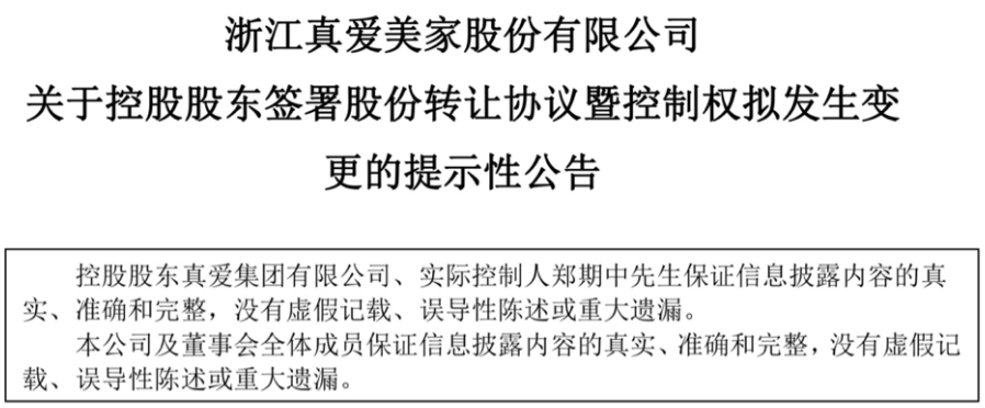 真爱美家发布控制权拟发生变更的提示性公告
