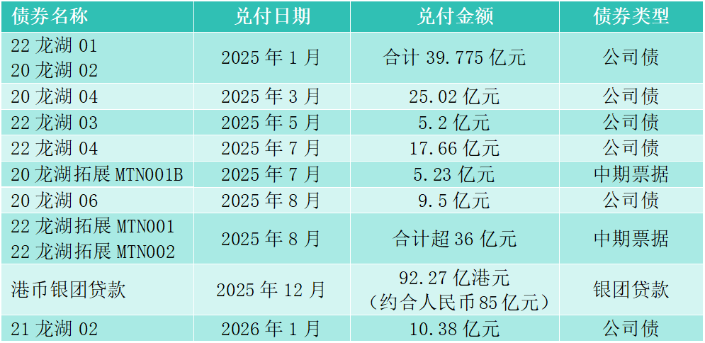 龙湖集团兑付债务情况(2025年1月至今)