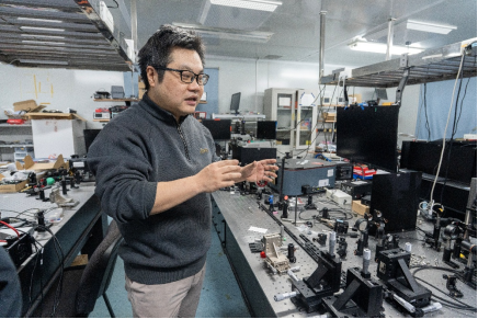 在漆黑的实验室,捕捉着光子沿着肉眼不可见的方向传递出的信息。彭超和他的团队取得了一项又一项拓扑光子学与光子集成领域国际领先的原创成果。