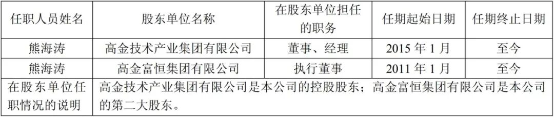 熊海涛在三家上市公司的第一大股东高金集团任职