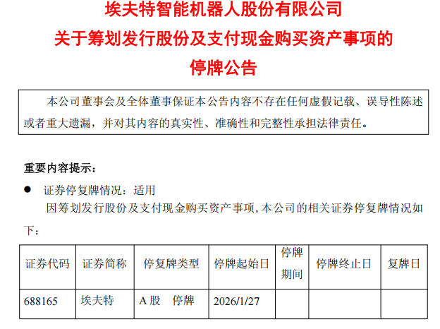 埃夫特发布停牌公告